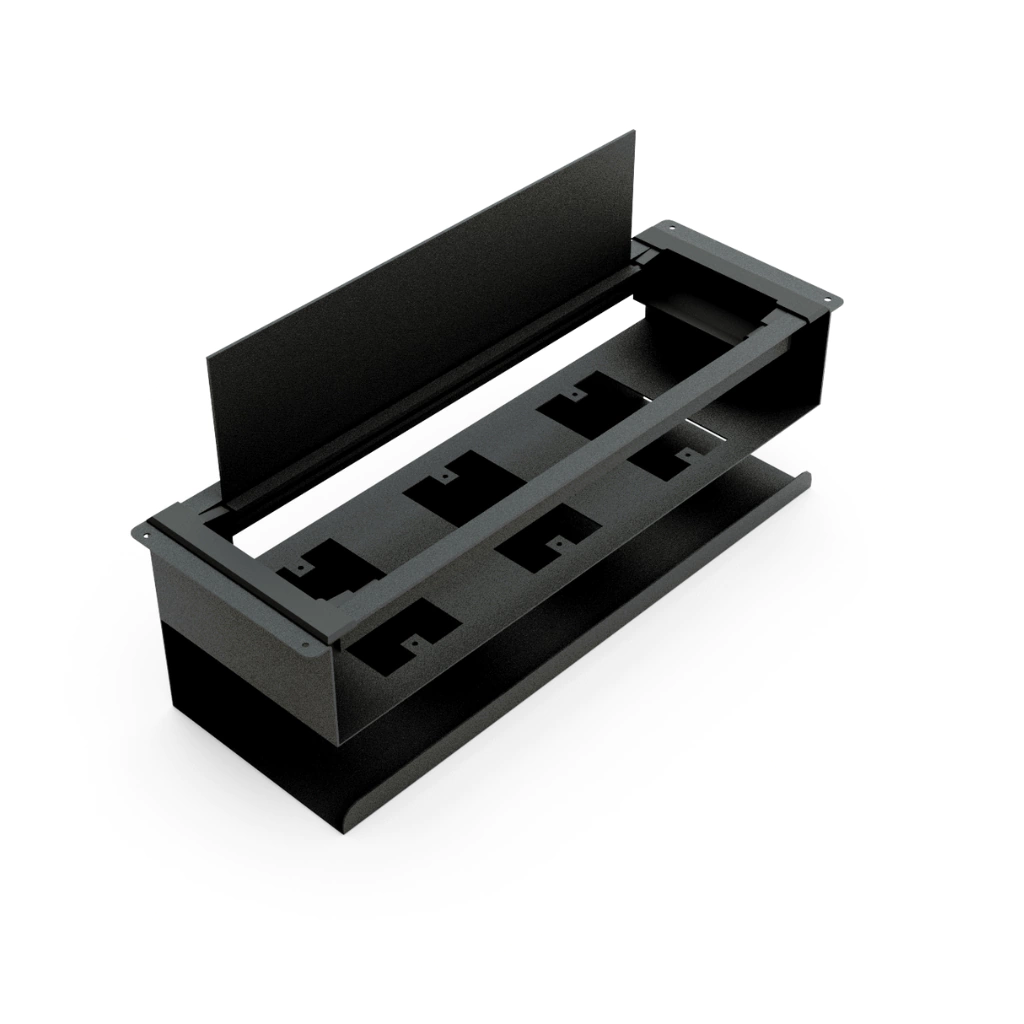 Canaliza energía y datos, evita enredos y caídas, y mantiene las conexiones accesibles desde la superficie. Ideal para puestos individuales y mesas de reunión.