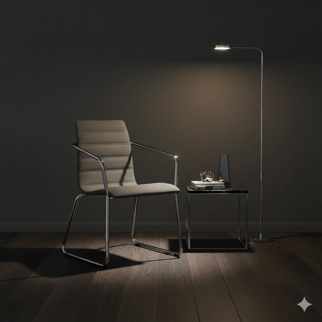 Su estructura de varilla cromada es resistente y fácil de mantener. Además, el modelo es apilable, ideal para espacios dinámicos.